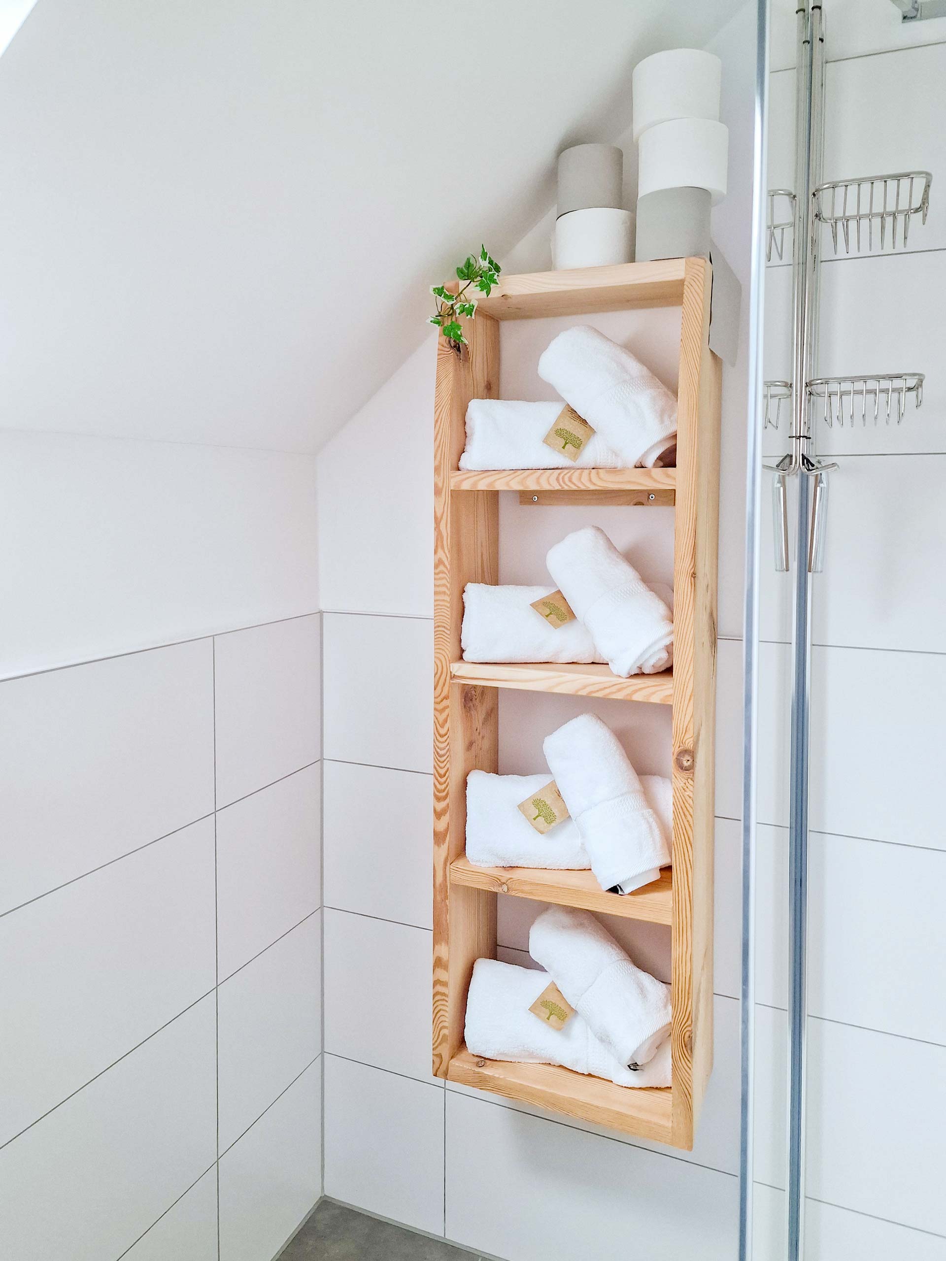 Übrigens: In ausgewählten Bädern duscht es sich so grün, wie es nur geht – nämlich umgeben von einem hübschen Feldeingang, den wir mit der Kamera eingefangen und tropfsicher an die Wände gebracht haben. Was uns sonst noch besonders macht? Bei uns atmet ihr gesunde Luft! Denn wir haben bei der Sanierung unseres Gutshofs darauf geachtet, wie früher zu bauen, und zwar ohne Kompromisse: von der Eichen-Fußleiste aus dem Sickeröder Wald bis zu den von unserem Haus- und Hof-Tischler aufgearbeiteten Gutshof-Türen, die er anstatt mit Silikon mit zarten Eichenleisten umkleidet hat. Jede Zimmereinrichtung und jedes Möbelstück wurde individuell für euch angefertigt – jeder Raum hat eine eigene Seele!