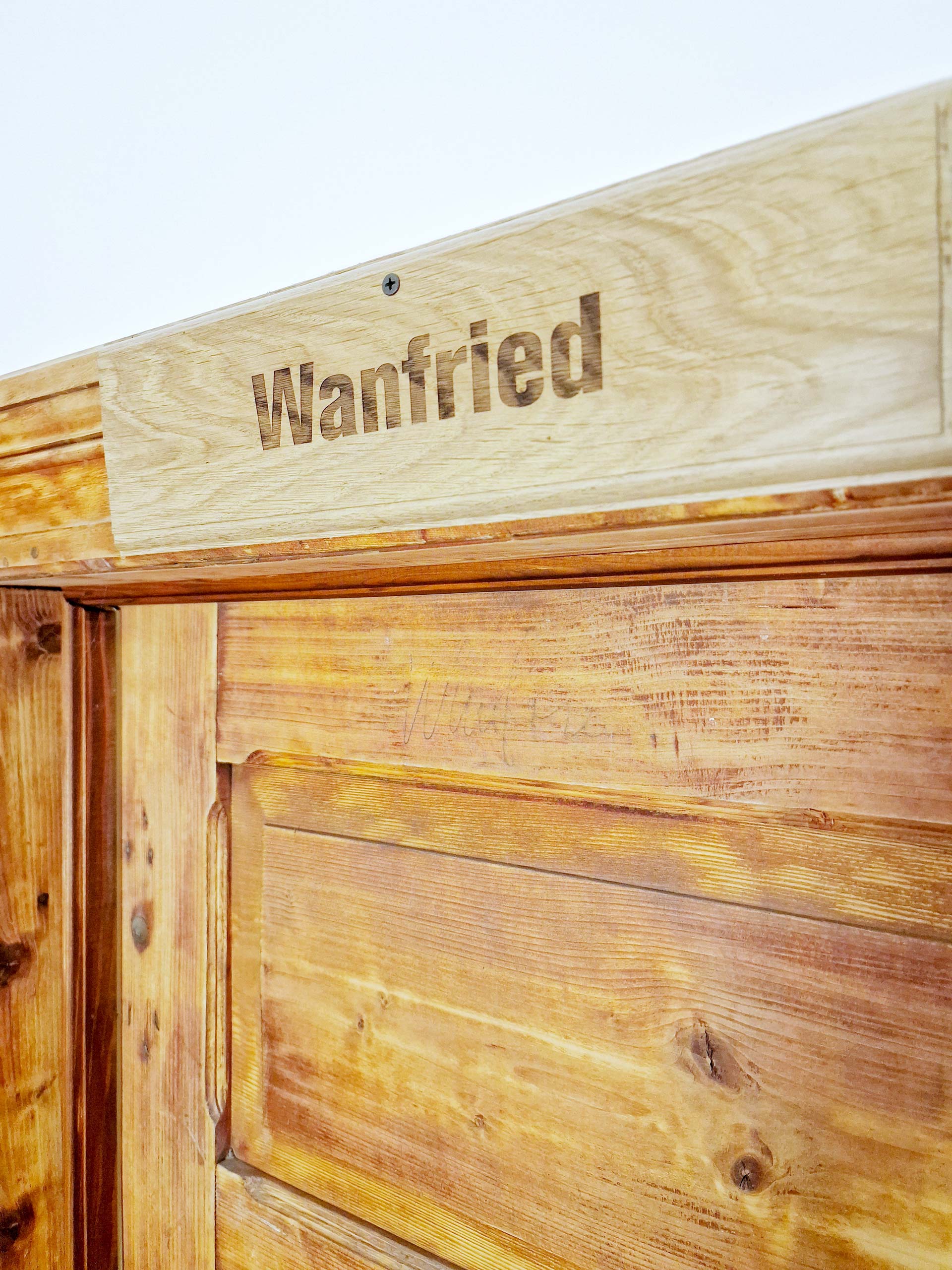 Unsere Ferienwohnung „Wilbich“ im oberen Bereich des Gutshofs ist ein echtes Schmuckstück. Alte, wunderschöne Holzbalken fügen sich dezent in den großzügigen, hellen Raum ein, während die sorgfältig restaurierten Dielen Wärme und Gemütlichkeit ausstrahlen. Fünf bis sechs Personen finden hier verteilt auf zwei Zimmer genügend Platz für eine Auszeit vom Alltag. Beim Blick aus dem Fenster schaut ihr übrigens nicht nur ins Grüne, sondern entdeckt – wenn ihr ganz genau hinseht – auch die kleinen Spuren eines Maders, der vor rund 50 Jahren auf den damals frischen Ziegeln herumspaziert ist. Unser kleiner Walk of Fame hat schon einige Gäste zum Schmunzeln gebracht.