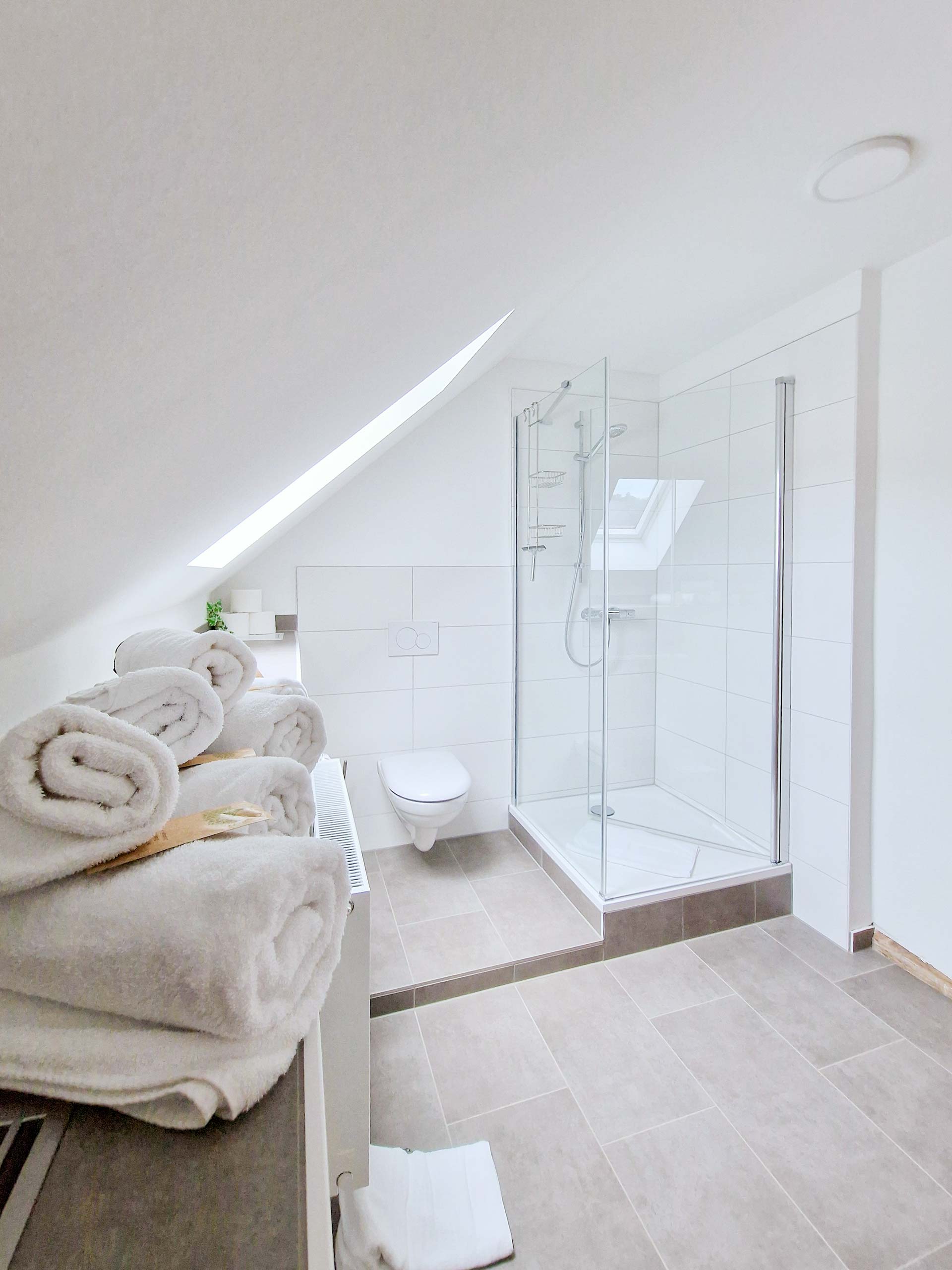 Schon eine Weile auf Tour? Kehrt ein und ruht euch von der anstrengenden Reise aus! Unsere rustikal eingerichteten und frisch sanierten Familienzimmer „Kella“, „Aue“ und „Wanfried“ bieten Platz für vier Personen – aufgeteilt auf zwei Räume – und echten Wohn- und Schlafkomfort. In „Ershausen“, unserem Pilgerzimmer, und in „Wilbich“, unserer Ferienwohnung, finden bis zu fünf Gäste Platz. Alle Bäder sind mit Dusche, Toilette, Waschbecken und einem Haartrockner ausgestattet.
